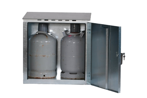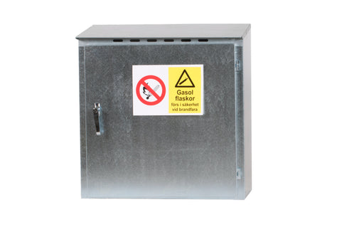Gasolskåp i galvad stålplåt som rymmer 2 st P11-flaskor. Inklusive låscylinder med 2 st nycklar. Levereras omonterat. Avsett för utomhusbruk.  Höjd...