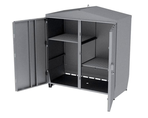 Kraftig container i galvaniserad stålplåt för förvaring av gasol-/gasflaskor.  Dörrar i dubbel stålplåt. Espanjolettlåsning (10 mm grov stålstång) ...