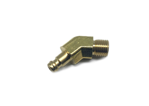 45°-vinklad snabbkopplingshane till snabbkopplingskranar med utvändig gänga 1/4"V.OBS! Endast avsedd för lågtryck, max 50 mbar. Passar i honan till...