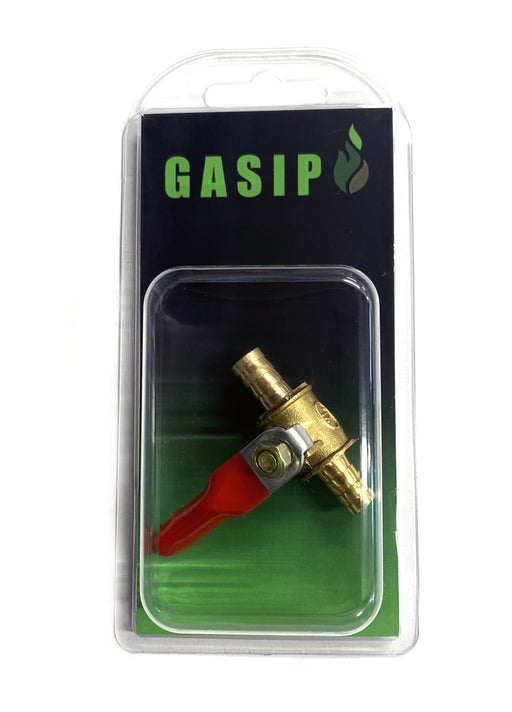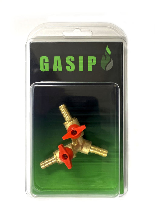 3-vägs nålventil med anslutningar för 8 mm gasolslang. Ventilen stänger endast benet på T.