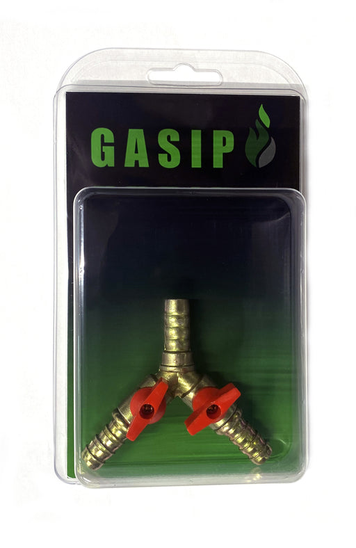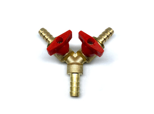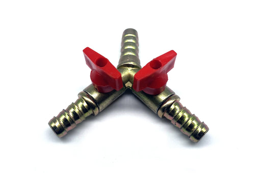 3-vägs slangsockel Y-modell med två avstängningsventiler. Passar 8 mm slang.